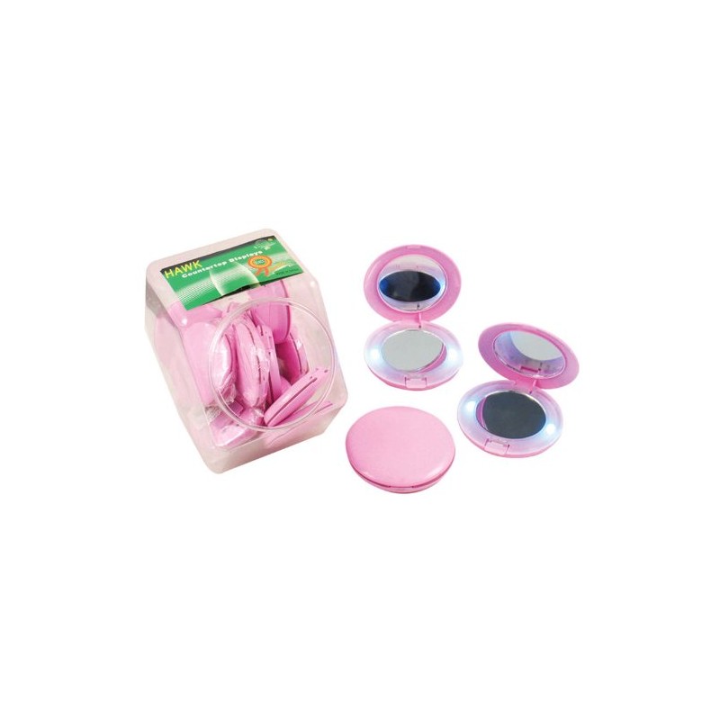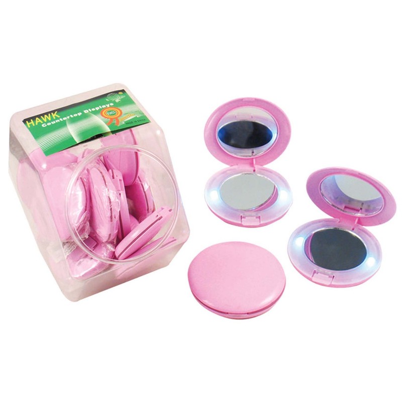 This Set Of 25 Lighted Pocket Mirrors Comes In A Clear Plastic, Counter Top Display Jar. The Pretty Pink Color Will Surely Get A Lot Of Attention From Your Female Customers, Or Even The Men Who Are Looking For A Gift For Their Favorite Lady. This Jar Makes An Attractive Display By Itself, Or You Can Combine It With Other Jars To Create A "center Of Attention" For Your Business. * 25 Units In A Counter Top Jar * Pretty Pink Color * Regular & Magnified Mirrors * Small And Slim * Fits In Any Handbag BLACK FRIDAY Specials -Cyber Monday & Holiday Deal