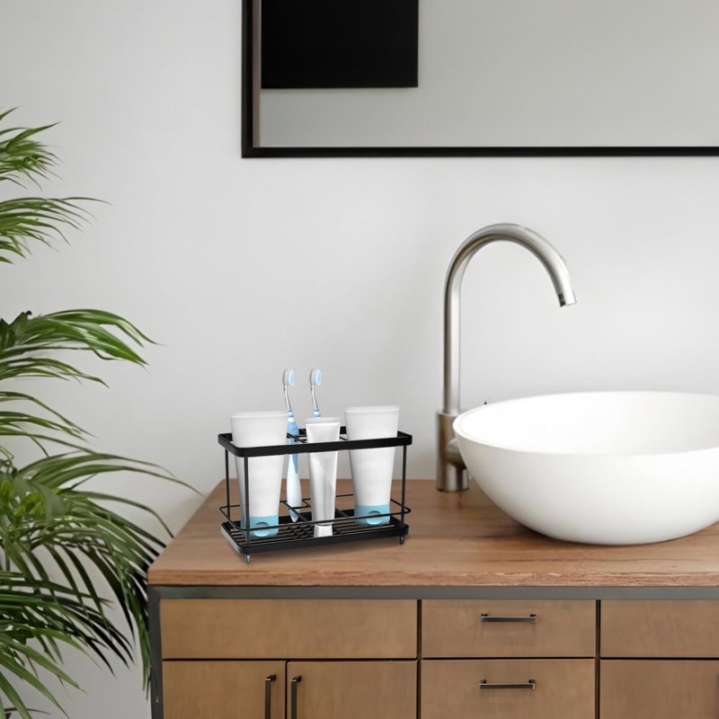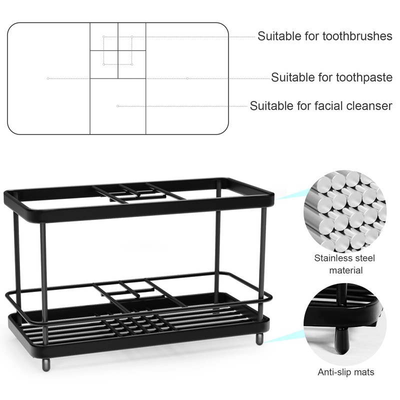 Toothbrush Holders for Bathroom Stainless Black Toothpaste Stand Bathroom Accessories Organizer Countertop Wall Mount