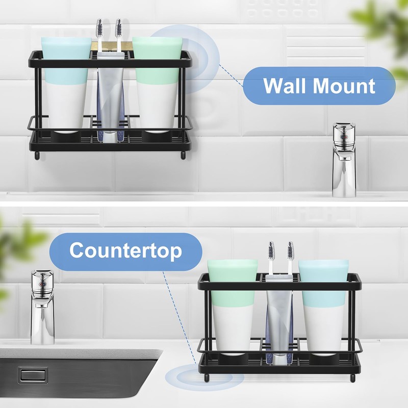 - Two ways to use it: You can use the adhesive hooks that come with the package to hang the toothbrush holder on the wall without worrying about drilling holes to damage the wall. It can also be used directly on the sink.