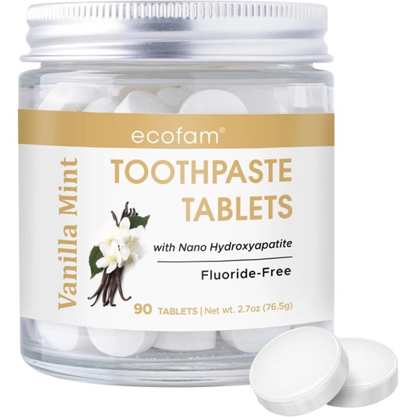 Toothpaste Tablets – Vanilla Mint | Fluoride-Free Chewable Toothpaste with Nano Hydroxyapatite | Fresh Breath & Enamel Care | Travel-Friendly & Mess-Free | 90 Tablets