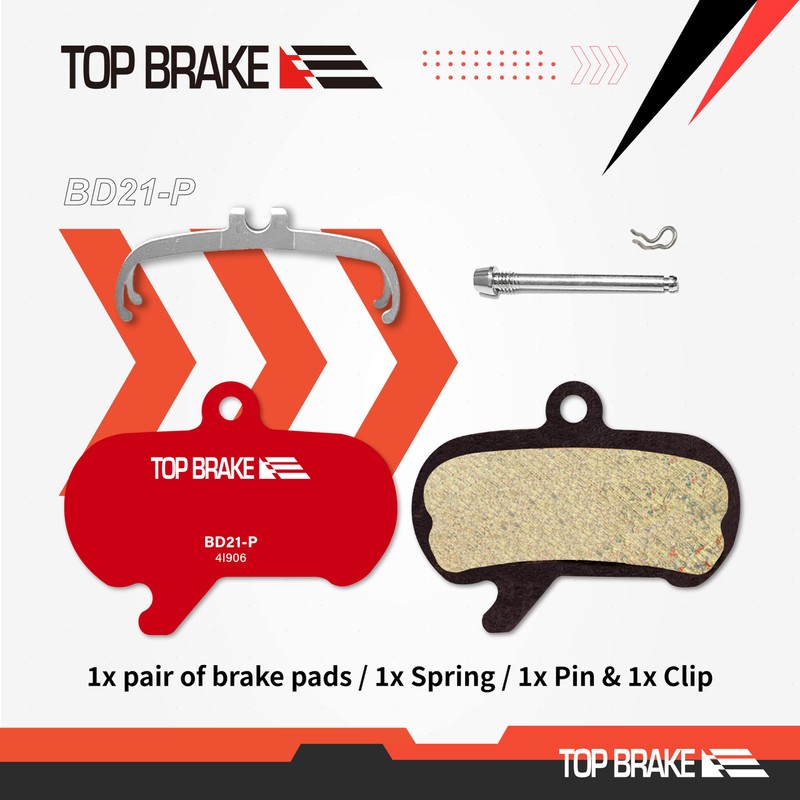 Top Brake BD21 Disc Mountain Bike Brake Pads Compatible with SRAM Maven Extra Large | MTB, Downhill, Trail Bikes | Ceramic Compound, Silent Option, Performance Version, Red (PIN Included)
