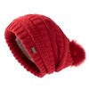 TOP-EX 100% Merino Wool Knit Slouchy Beanie for Women Silk Satin Lined with Faux Fur Pom Warm Womens Winter Hat for Cold Weather Red