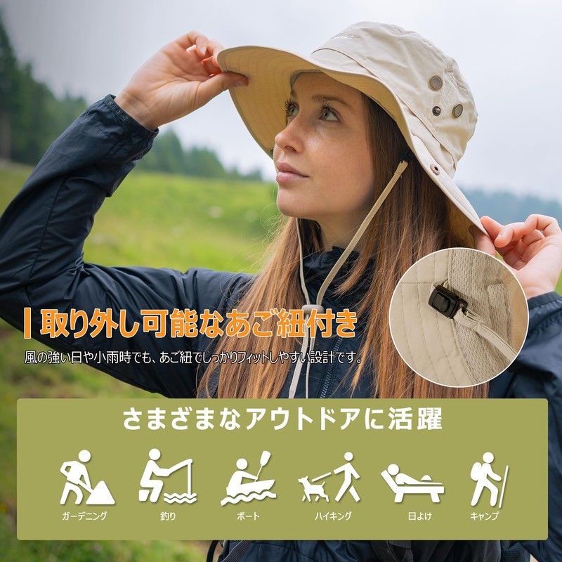 TOP-EX Women's Safari Hat, Ponytail Compatible, Mesh, Adventure Hat, Foldable, Stylish, UV Protection, Sun Hat, Wide Brim, Chin Strap, Outdoor Activities, Women's, Bicycle, Mountain Climbing, Golf