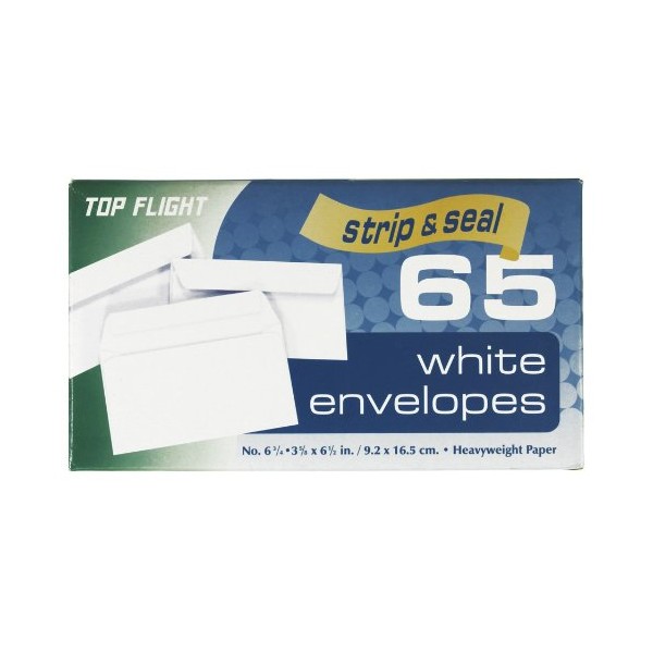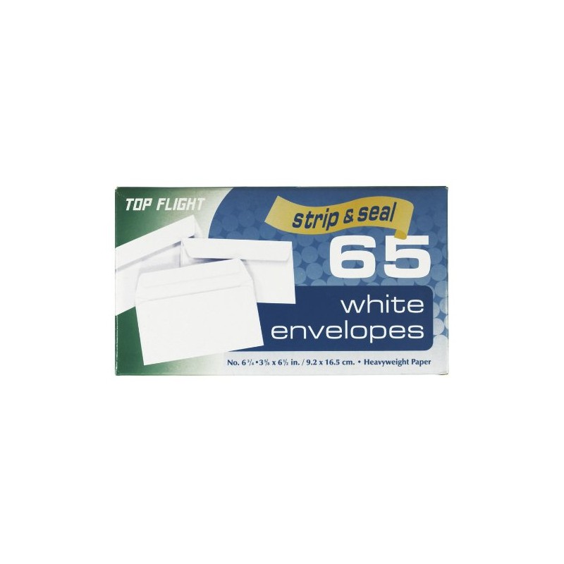 Top Flight Boxed Envelopes, Strip and Seal Closure, 3.75 x 6.75 Inches, White, 65 Envelopes per Box (6900116)