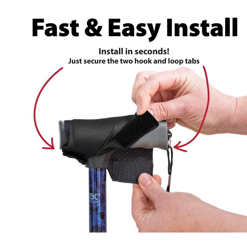 - FAST & EASY INSTALLATION: The Top Glides Cane Pad Hand Covers are easy to install immediately in seconds with stretch fabric for universal fit. Simply place the pad over your existing cane handle and use the attached straps to secure it in place. The fast installation makes it easy to detach and reattach the cane covers on different canes, so you can take your personalized comfort with you wherever you go.