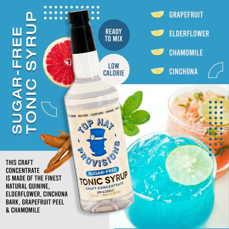 Top Hat Keto Sugar Free Elderflower Tonic Syrup & Quinine Concentrate - Naturally Sweetened with Monk Fruit - Craft Soda Mixer for Skinny Cocktail Drinks - Just Add Seltzer Water - 32oz Bottle