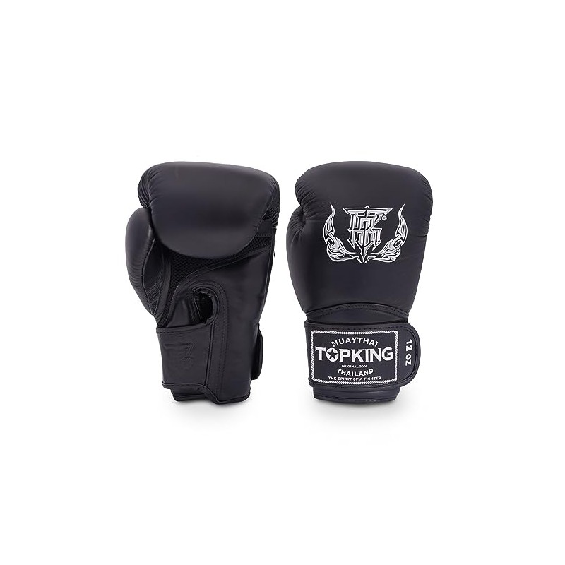 Top King Super Air Breathable Leather Gloves Muay Thai Boxing Gloves for Training or Sparring - Black, 14oz