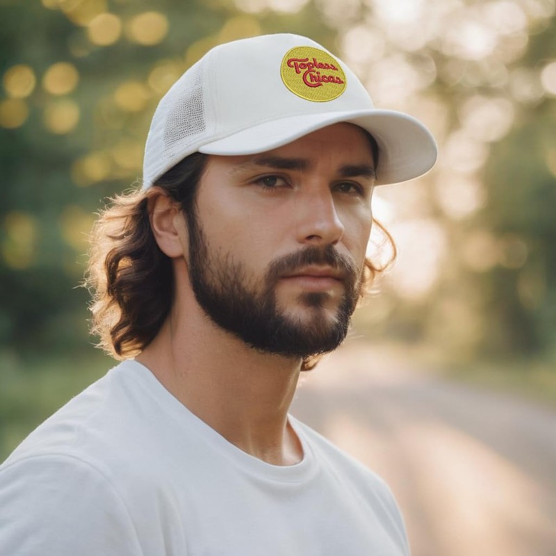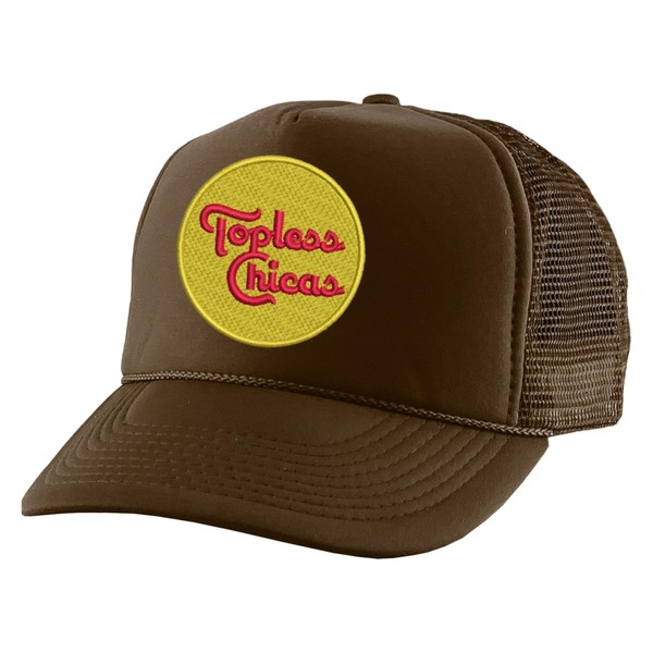 Top Less Chicas Trucker Hat Funny Embroidered Adjustable Snapback (Brown)