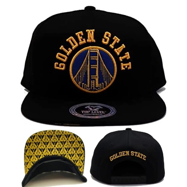 Top Level Golden State Bridge Snapback Hat in Basketball Colors.