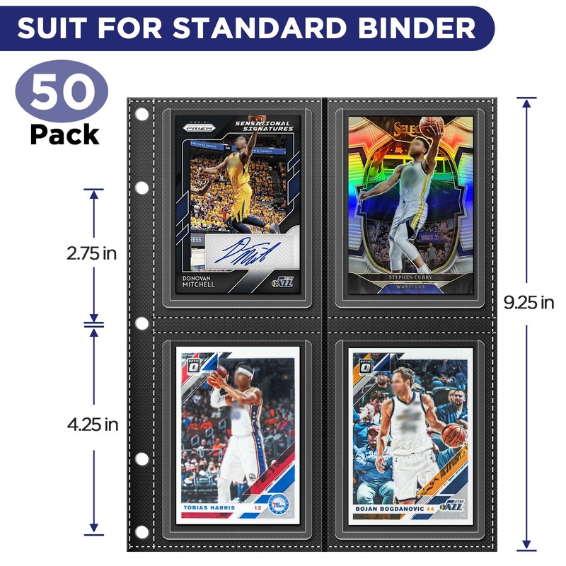 Top Loader Sleeves 4-Pocket Trading Card Storage Refill Binder Pages – 50 Pack