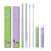 TOP STAR 2 Pack Metal Portable Straws for Reusable,Telescopic Drinking Straws with Cleaning Brush for Cold Water,Coffee,Juice (Green&Pink)