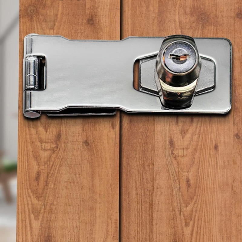 - 【4 Inch Door Lock Hasp with Padlock】: The 4 Inch keyed hasp lock can provide you with security and privacy, effectively preventing strangers from disassembling and breaking in, while avoiding the risk of children or pets flipping drawers and getting pinched.
