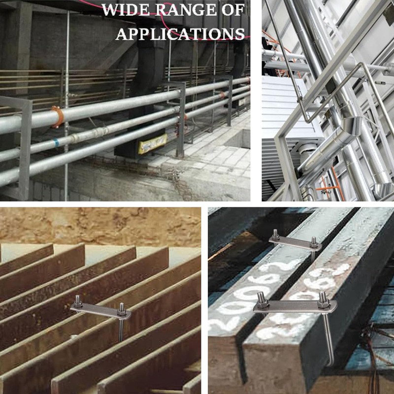 Versatile Applications: U-bolts serve various purposes in both residential and industrial settings, such as towing rings, pipe clamping rings, coupling rings, and clamping rings. They are also ideal for fastening or connecting pieces to pipes, wood, and more, making them suitable for DIY projects at home or in the garden, as well as outdoor activities.