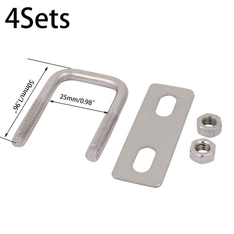 - 【Size & Package】Thread Dia.: M6; Fit Rod Size: 25mm; Total Length: 50mm. Package Content: 4 x U-Bolt, 8 x Nuts, 4 x Plates, 8 x Washers