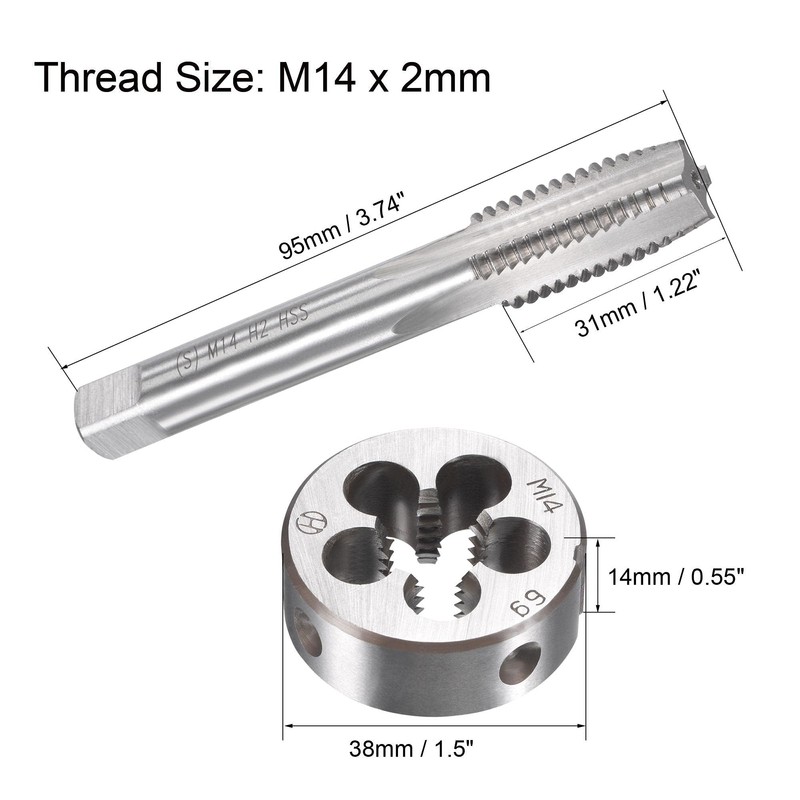- [Size & Package]: Tap & Die Size: Thread Size: M14 x 2mm; Package including: 1Pc x Machine Tap and Die Set.
