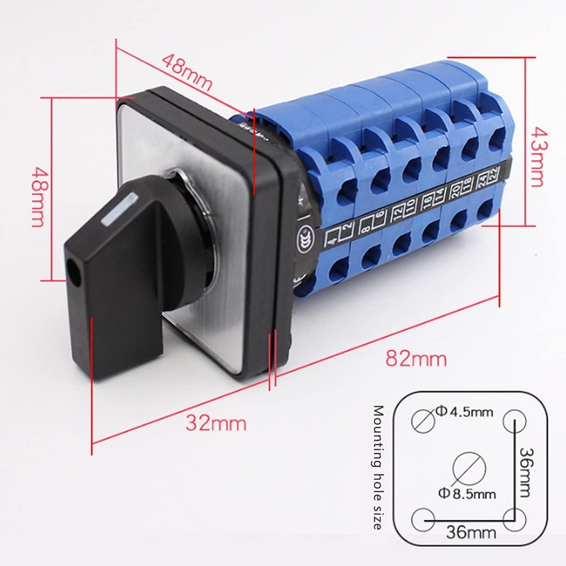 TOP-VIGOR Universal Rotary Cam Selector,Changeover Switch,Changeover Selector Switch LW26-20 D606/6 380V 20A 3 Positions 24 Terminals