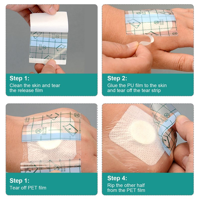 - ????Gesundes Material??Folienverband Besteht aus PU-Folie, PET-R1ckseite, medizinischer druckempfindlicher Klebstoff und Abl?sungspapier. Durch die Verwendung der mikropor?sen Technologie kann die Haut frei atmen und ist wasserdicht, komfortabel und antiallergisch, minimieren Sie Sch?den auf der Haut.
