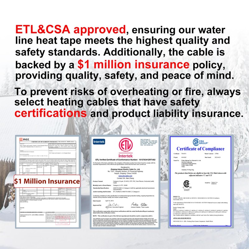 - Certified Quality & SafetyOur TDRD-F Roof Deicing Cable Boasts CSA and ETL Certifications, Ensuring Superior Performance and Meeting the Highest Industry Standards for Safety.