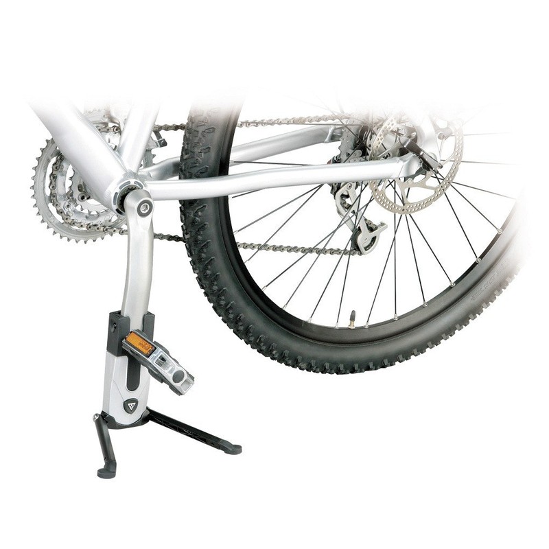 Practical universal bicycle stand for mounting on the crank. Designed for mountain bikes. Super compact.