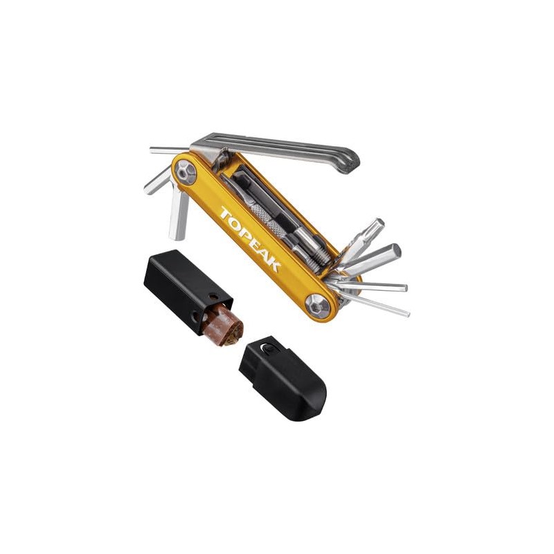 Topeak Tubi11 Combo is a 12 function, pro-quality, precision multi tool with integrated tubeless tyre repair functions. Tubeless repair tools are concealed within the folding tool body.