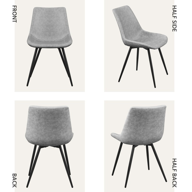 Topeakmart Dining Chair Set of 2, Upholstered Dining Accent Side Chairs with Faux Leather Cushion Seat and Metal Legs, Mid-Century Modern Simple Cafe Chairs for Indoor, Gray