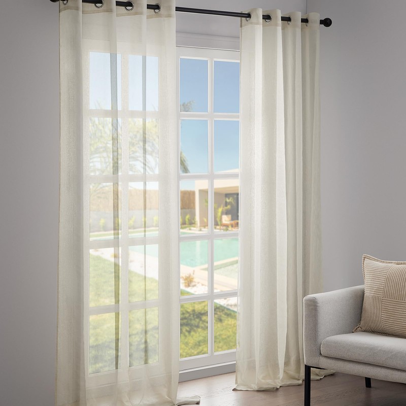 - Quantity and size: 1 piece linen look curtains with eyelets, fabric dimensions: approx. 260 x 300 cm (height x width) per curtain.