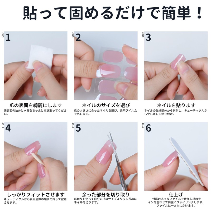 - Simple Finish in 15 Minutes: Nail stickers are easy and easy for beginners. SETP1. Choose your size, clean your nails, STEP2. Easy to apply, STEP3. Sharpen the extra parts