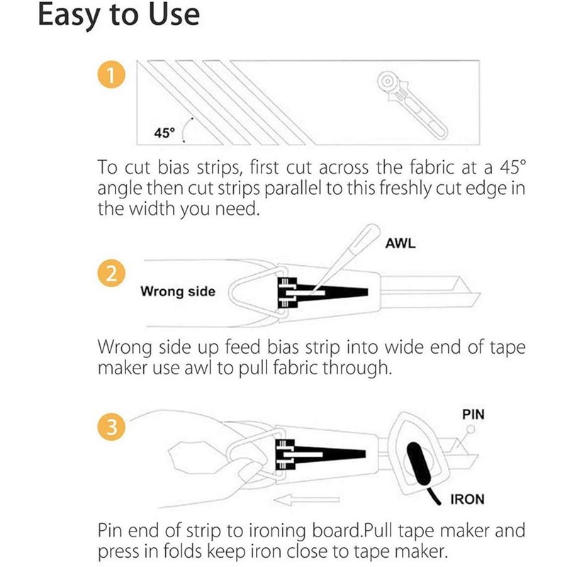 Easy, Quick, Precise, Create Your Own Bias Tapes in Minutes, Clear Instructions for Use On The Back Of The Blister Card.