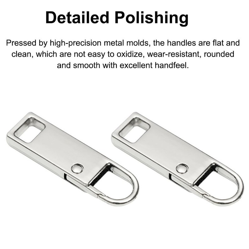 【Metal Material】Zipper replacement puller is made of metal through high-precision mold pressing, supplemented by environmentally friendly plating process, so that its overall clean as a mirror, dorless, not easy to oxidize, rust-resistant, wear-resistant can be used for a long time