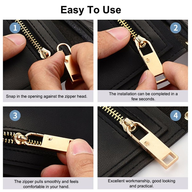 - 【Beautiful And Stylish】Jacket zipper head repair kit has 4 colors to choose from, which are silver, black, gold and gunmetal gray, but no matter which color you choose, they are all meticulously crafted with a flat, clean, mirror-like, rounded and smooth surface that feels great in your hand. The design is simple, low-profile and stylish, that can be suitable for a wide variety of clothes, bags, pants, and so on