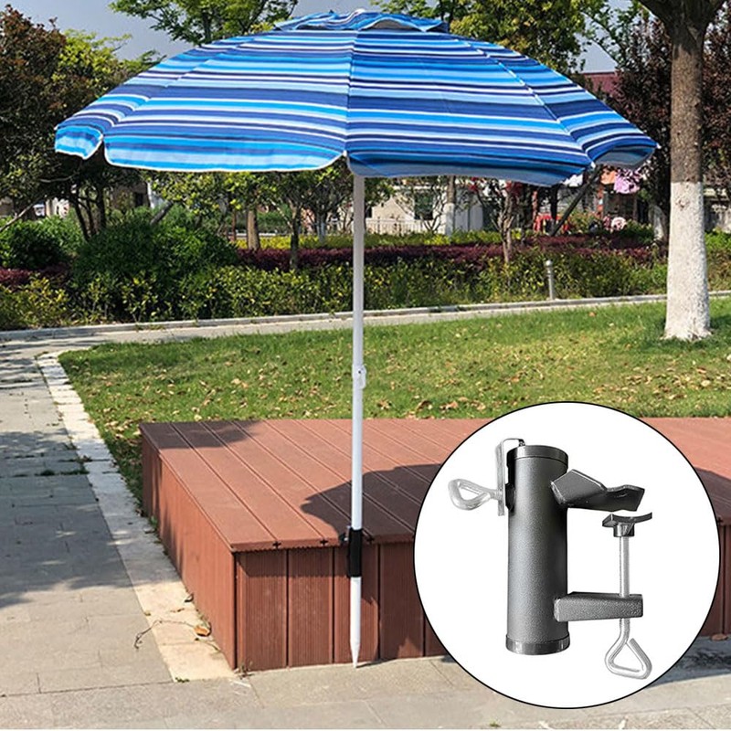 【Widely Applicable】This parasol holder is cleverly designed to quickly attach parasols, garden umbrellas, flagpoles, etc. to railings, tables, garden chairs, benches, fences and many other occasions. The moderate size of the clip is not only easy to carry, but also does not need to take up too much space when in use