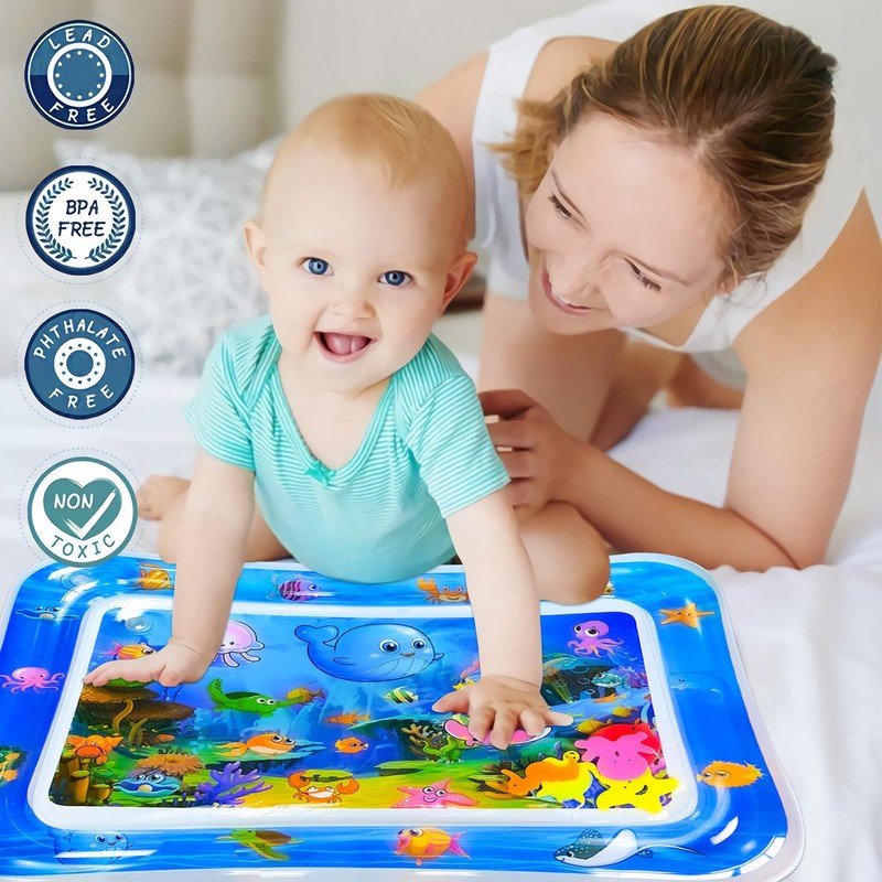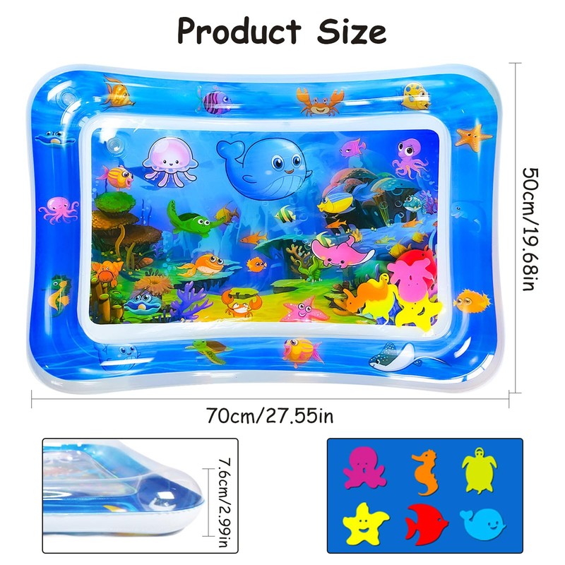 - UNIQUE PATTERNS The colorful sea creatures and eye-catching illustrations will keep your baby playing for hours. Your baby will try to catch and beat the colourful toys as they swim by. Babies will find themselves in this unique water mat.