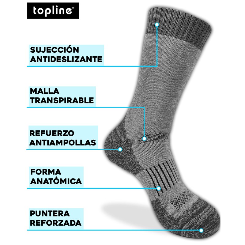 topline 6 Pairs Work Socks, Thermal Socks Men, Grey (6 Pairs), 40-46