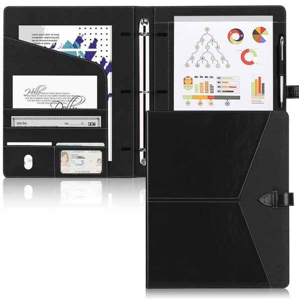 Toplive Padfolio 3 Ring Binder (1'' Round Ring) Business Portfolio Folder for Interview, Conference and Presentation, Black