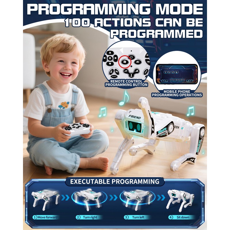 - 【4+ Intuitive Control Way】Effortlessly guide the robot dog via Gravity Sensor, Touch-Screen App, or the included Physical Remote. This variety offers a perfect blend of creative play and family entertainment for everyone.
