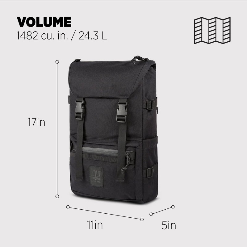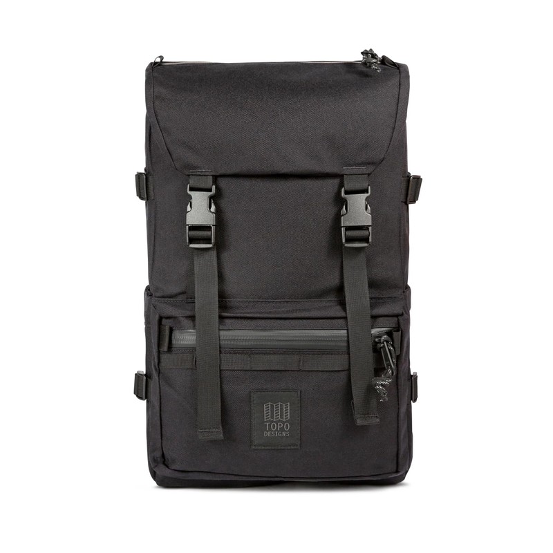 Topo Designs Rover Pack Tech - Daypack for Commuters, Iconic Denver Design, Recycled Nylon Construction (Black)