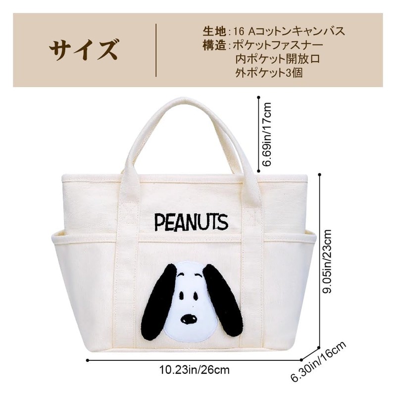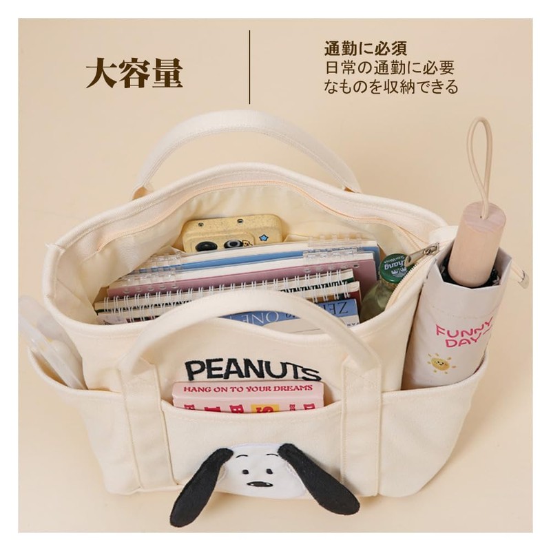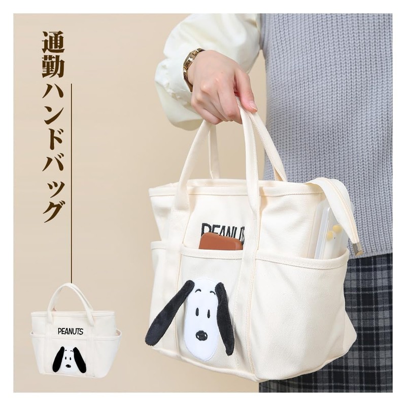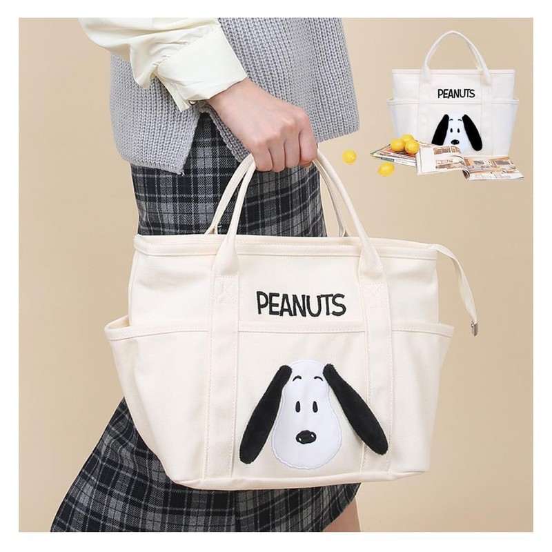 Topohlia Snoopy Bag, Cute, Large Capacity, Casual, Versatile Canvas Bag for Adults, white