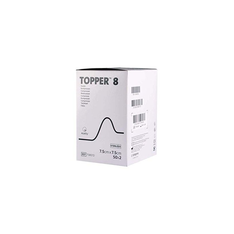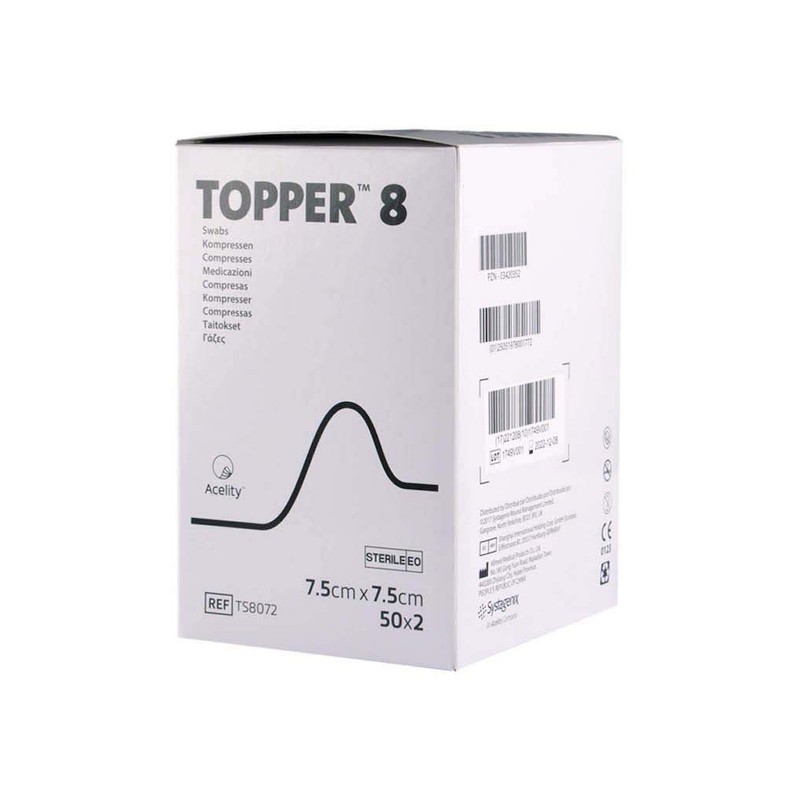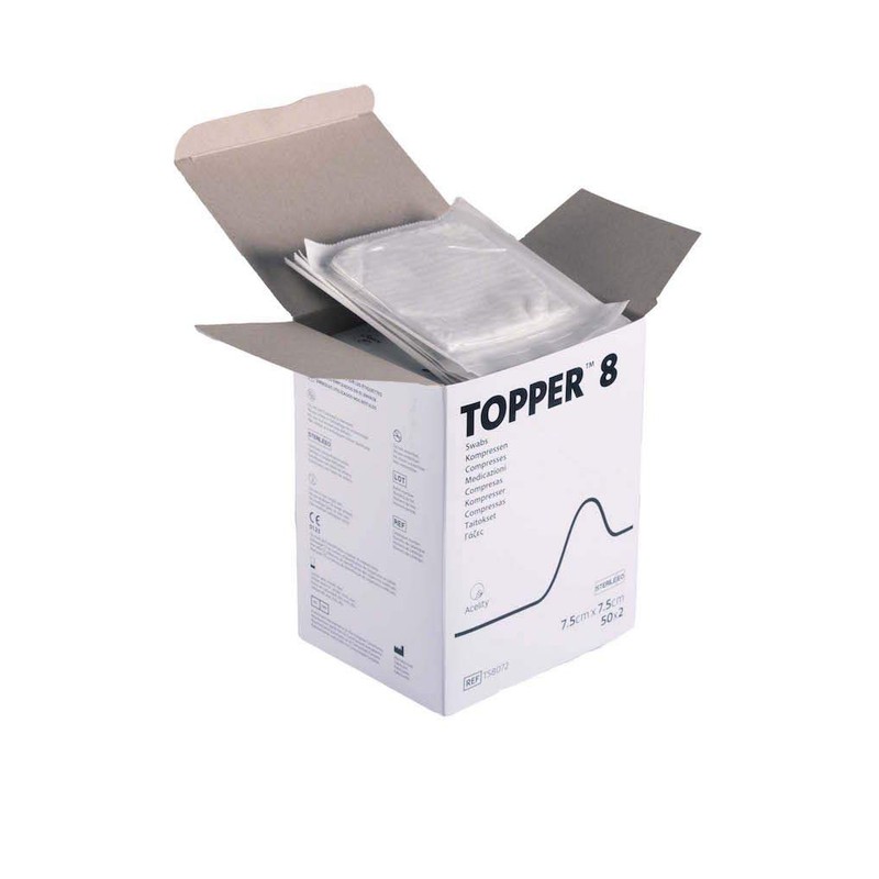 - Topper 8 Sterile Swabs, 7.5cm x 7.5cm, 50 Pouches, 2 Swabs Per Pouch