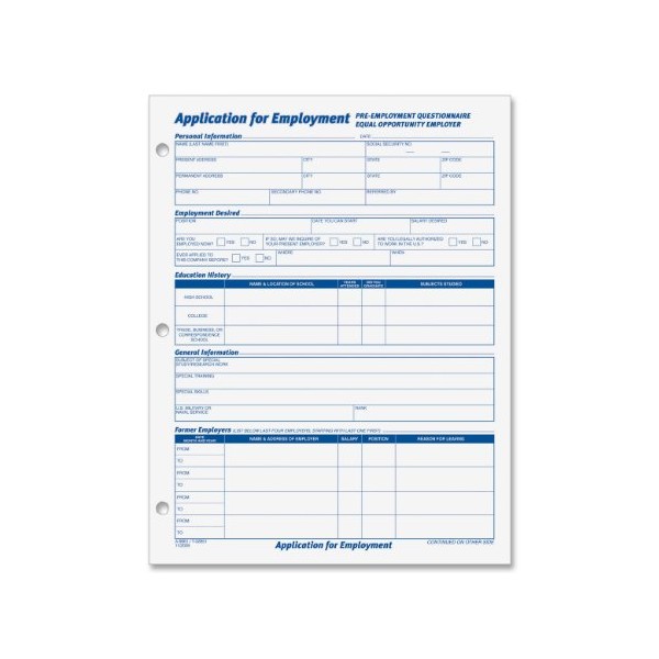 TOPS 8 1/2 x 11 Inch Employee Application 50 Sheet Pads, 2 Pack (32851)