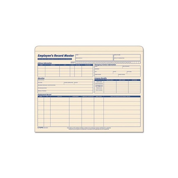 TOPS Employee Record Master File Jacket, 9 1/2 x 11 3/4, 10 Point Manila, 20/Pack