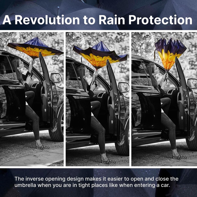 • WINDPROOF and DURABLE CONSTRUCTION. Built with a reinforced double-layer canopy and a robust frame, the Topsy Turvy umbrella resists strong gusts of wind without flipping inside out. The durable materials ensure long-lasting performance, even in harsh weather conditions like heavy rain or snowstorms.