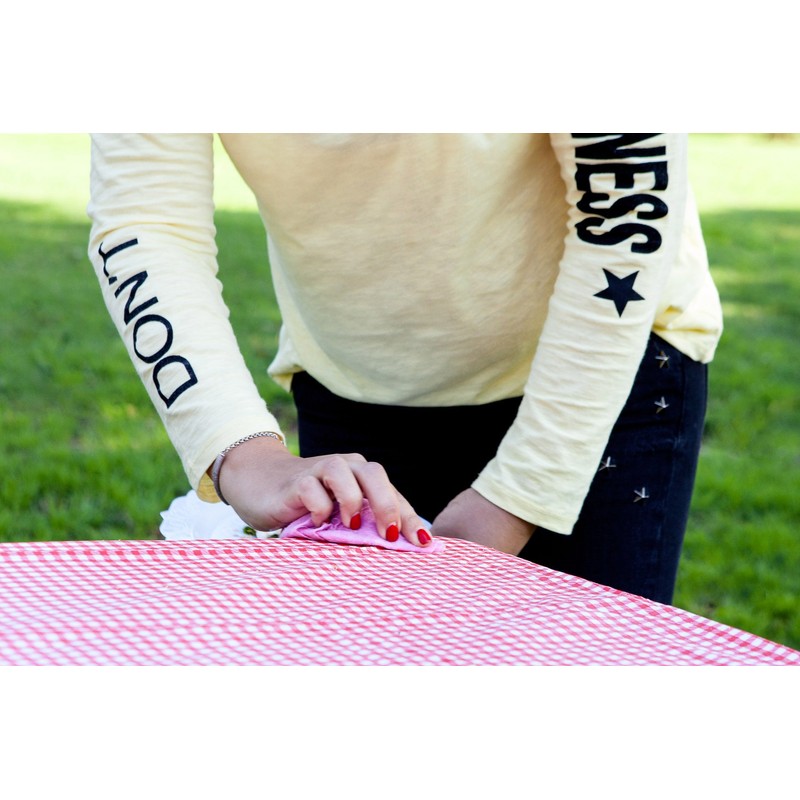 - WATER RESISTANT - Made from the highest quality plastic for a long and durable life - this perfect outdoor will become dry with just one wipe. BUT PLEASE WIPE, DO NOT RUB! - because the color may fade with the blue or red table cover. Any spills, raindrops or cleaning - this waterproof table cloth will wipe clean in an instant!
