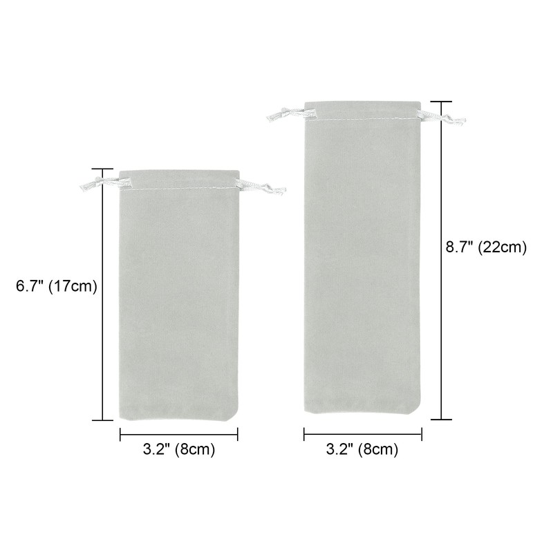 Approximately 3.2 x 6.7 inches (8*17cm) and 3.2 x 8.7 inches (8*22cm), suitable for sunglasses, glasses, cell phone, MP4, necklace, brush & tools, pen, cosmetic and so on.