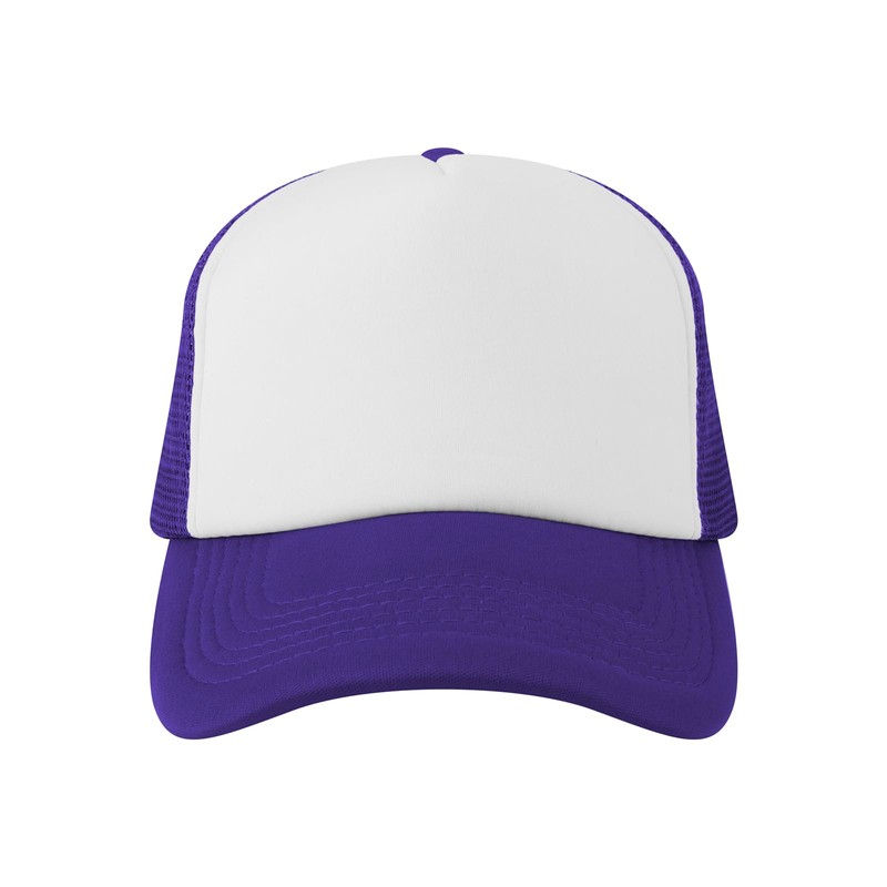 TopTie Blank 5 Panel Trucker Hat Foam Front Mesh Back 2 Tone Trucker Snapback Hat-Purple White