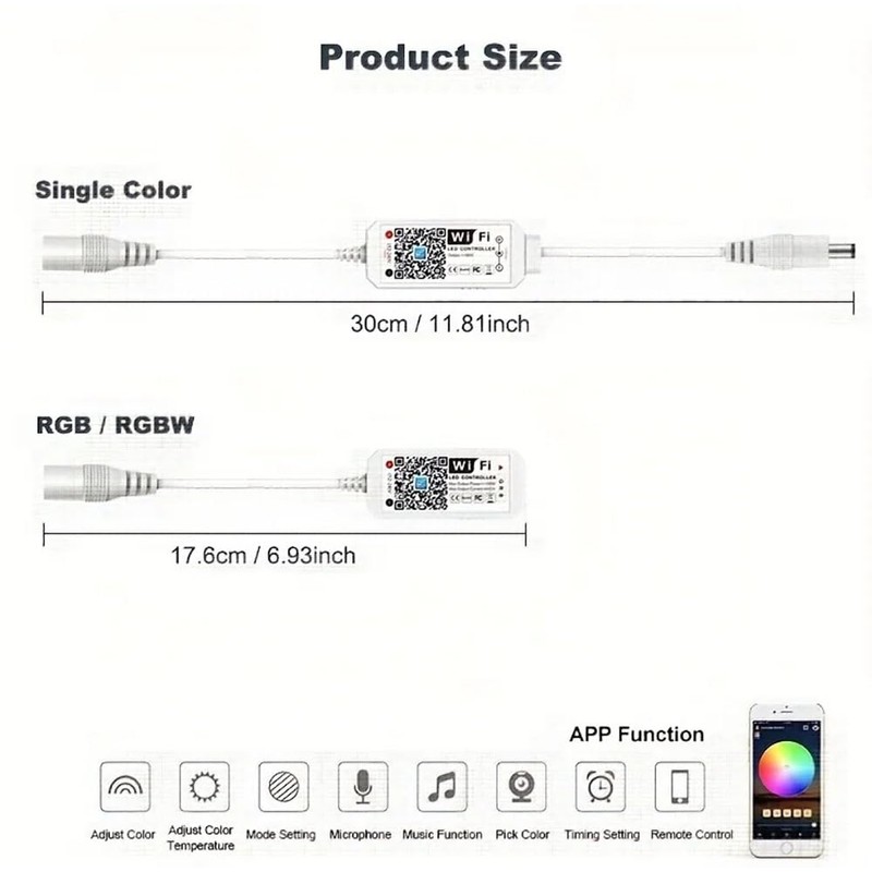 - Intelligent Control: This LED controller can be controlled via WiFi with your smartphone or tablet, allowing you to conveniently operate your LED lighting.