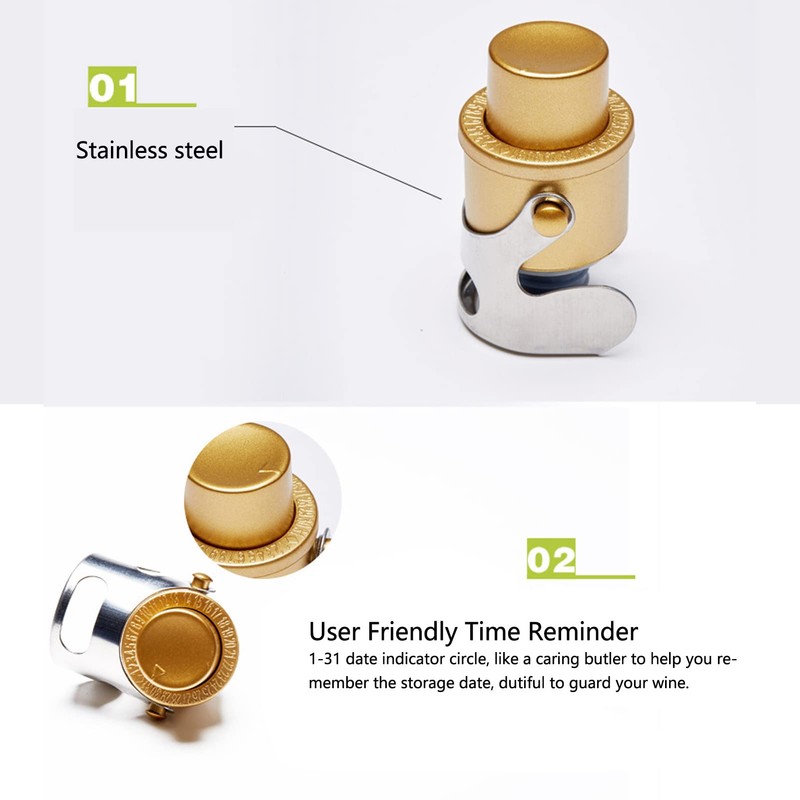 Material: Made of stainless steel, providing reliable sealing performance, ensuring the champagne in the bottle maintains its freshness and bubbles, extending its shelf life, allowing you to enjoy the delightful champagne flavor for a longer period of time.Multi-functional Design: The golden champagne stopper features a reusable bottle sealer, suitable for various regular wine bottles, not only for champagne but also for wine, offering more choices and convenience.Exquisite Appearance: The stylish and elegant golden design adds a touch of luxury to the bottle, enhancing not only the taste and quality of the wine but also the overall aesthetic of the bottle.