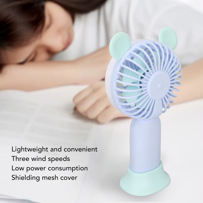 • ERGONOMIC HANDLE DESIGN The portable handheld fan is equipped with an ergonomic handle, which ensures a comfortable and secure grip. Its rounded shape and tilt allow for effortless handling so you can take it anywhere and use it anywhere