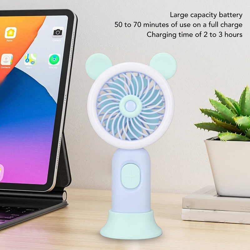 • 3 SPEED ADJUSTABLE This portable handheld fan offers three adjustable wind speeds to meet your different demands. You can easily switch between low, medium and high speeds to customise your cooling experience. Long press the button to turn off the light