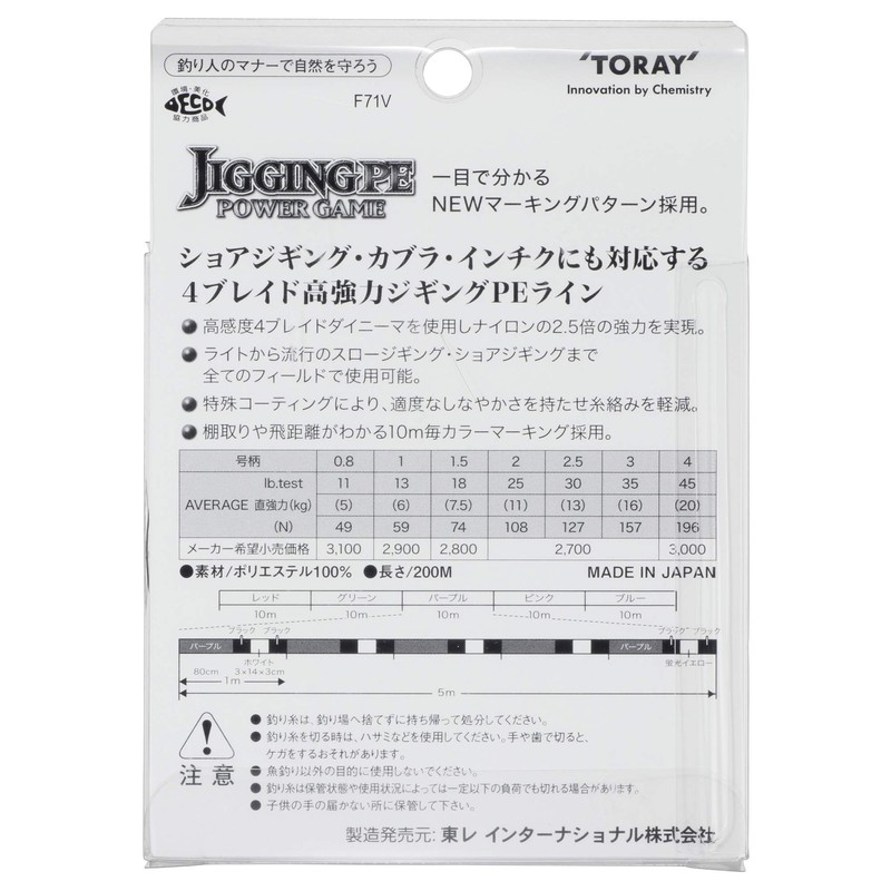 東レ(TORAY) PE Line Jigging PE Power Game, 66.4 ft (200 m), No. 1.5, 18 lbs, 7.5 kg), 4 Pieces, 5 Colors