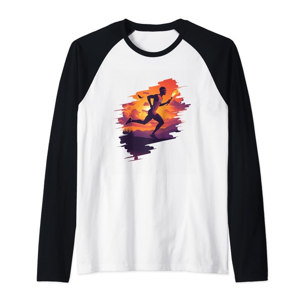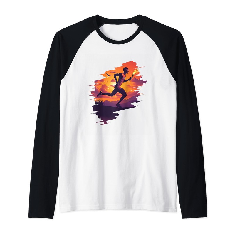Torch Bearer Running Against Sunset Raglan Baseball Tee